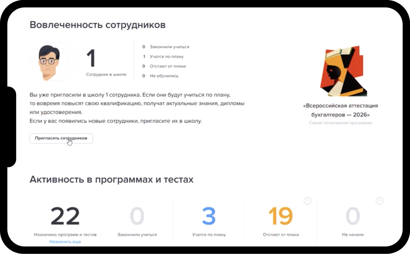 Онлайн-курсы, разработанные специально для бухгалтерий средних и крупных компаний. Постройте систему контроля и обучения сотрудников, с помощью которой вы создадите идеальный отдел без ошибок и штрафов